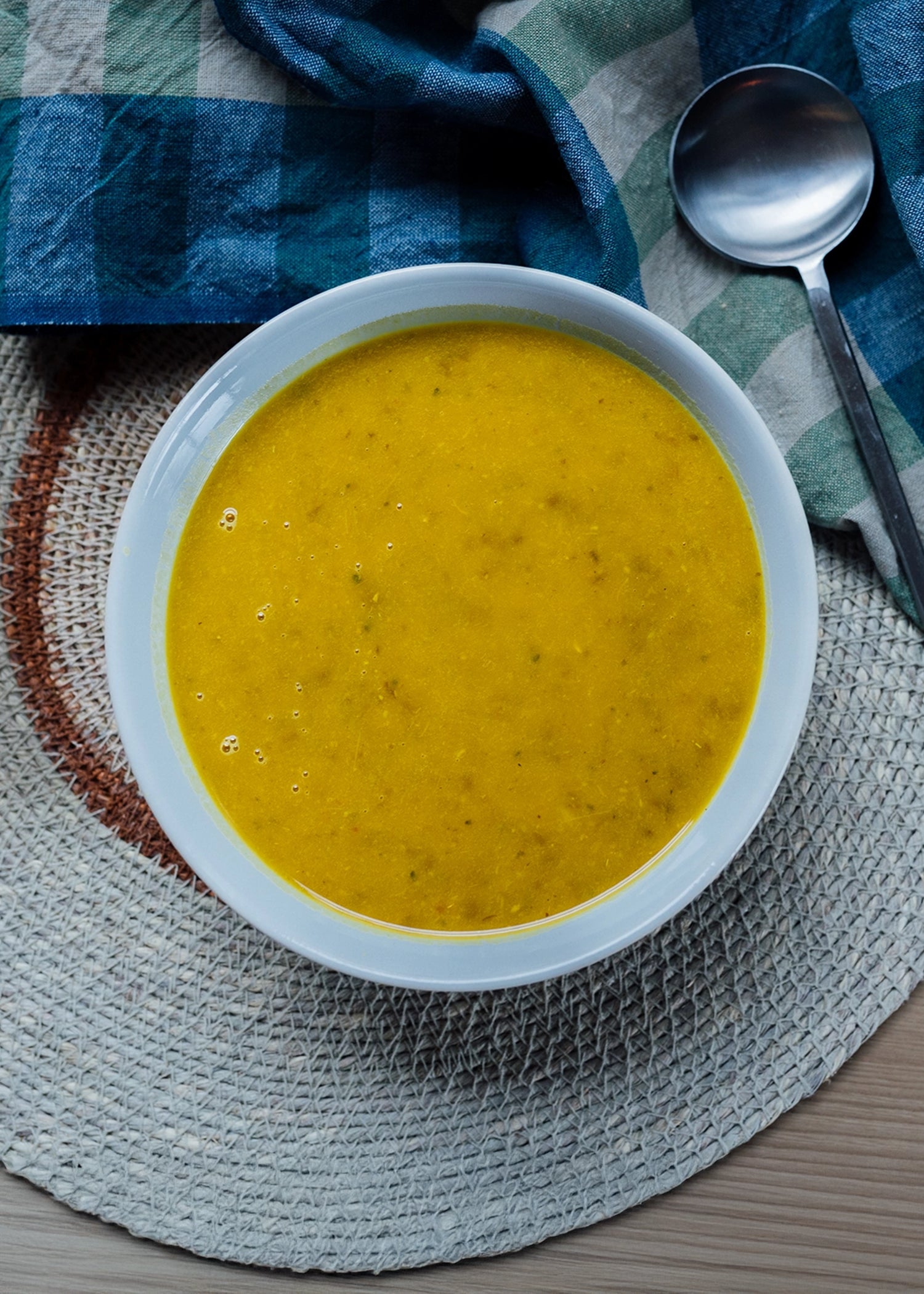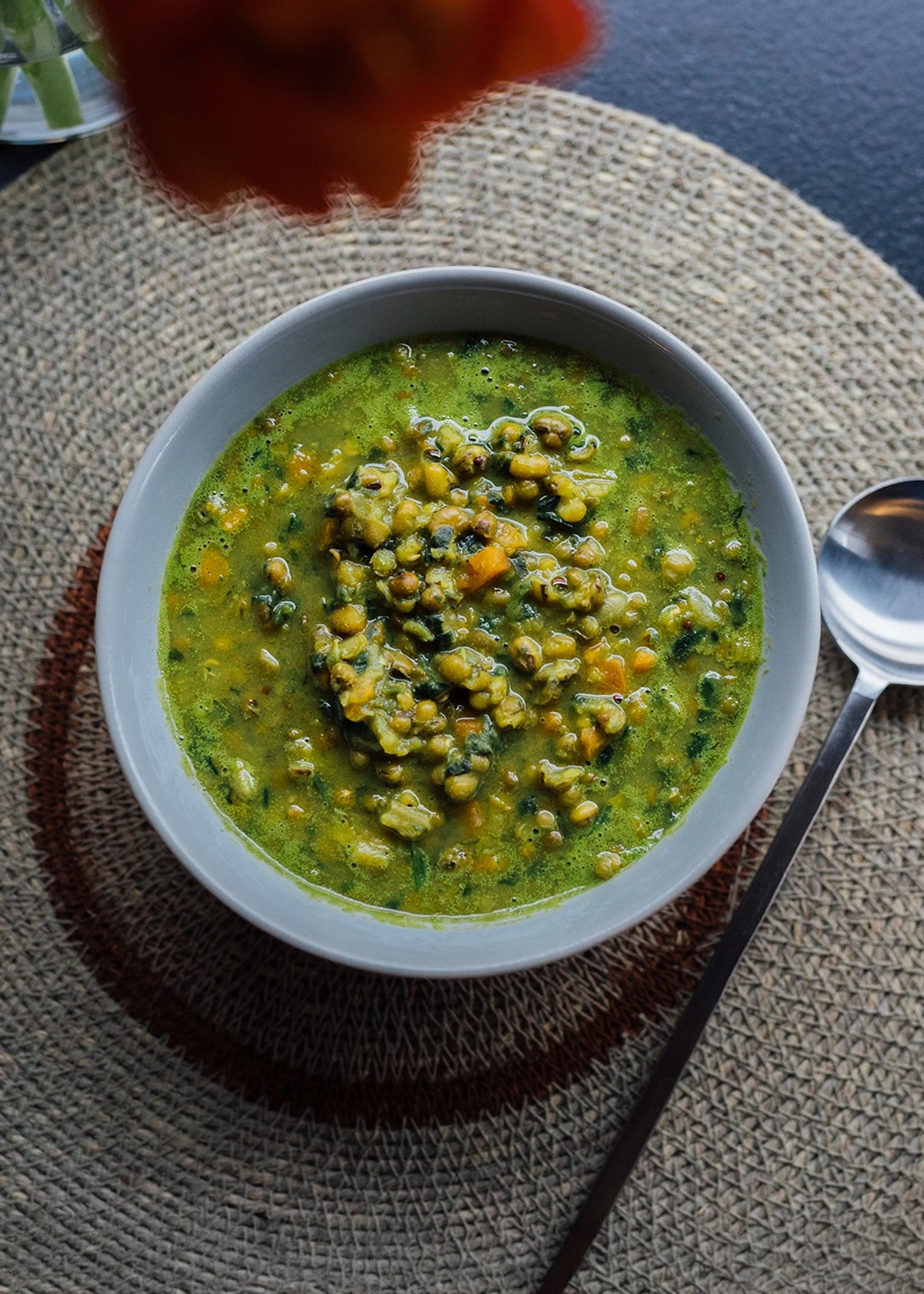 a hearty dahl made with whole mung beans that have been soaked overnight and then cooked in bone broth.